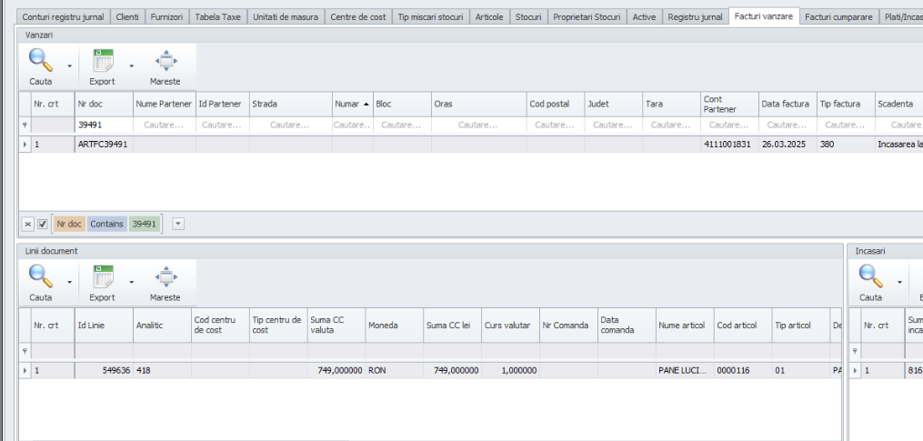 Pe facturi se preia numarul facturii, valorile si liniile, insa fara datele partenerului si arata asa: