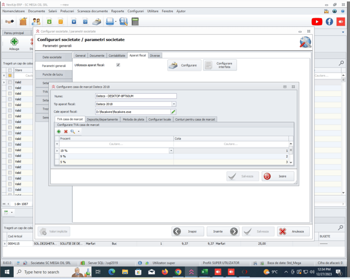 si avem casa de marcat datecs dp25, trebuie sa trecem la tip aparat fiscal Datecs 2018