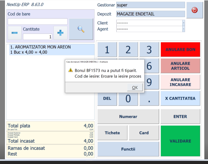 Eroare casa marcat