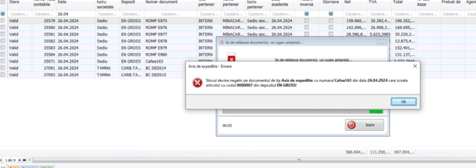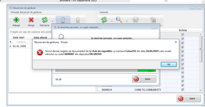 Daca incerc sa sterg descarcarea de gestiune imi da eroare pe acelasi aviz: