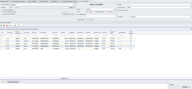 Cum se inregistreaza o factura cumparare cu tva la incasare si deducere 50%?