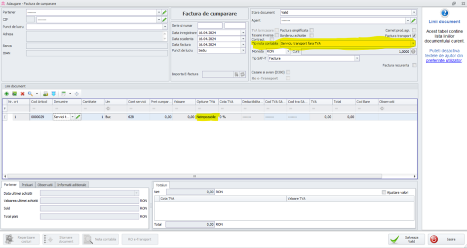 *Pe factura de transport avem doua posibilitati de a inregistra TVA-ul, in functie de preferinte: