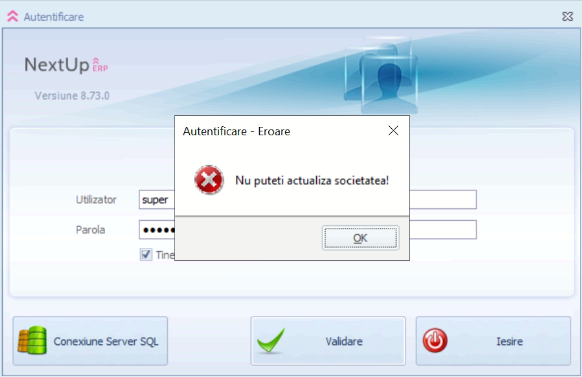 Cand un client are mesajul Nu puteti actualiza societatea la actualizarea aplicatiei, inseamna ca nu are licenta corecta.
