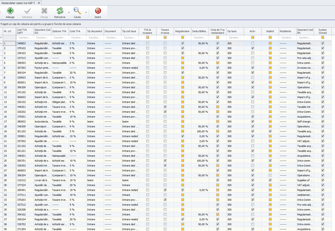 Aceasta configurare de coduri TVA este cea implicita, nu necesita modificarea nomenclatorului de coduri TVA SAFT.