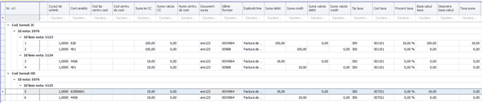 4. Datele exportate in XML D406 sunt cele ce se pot vizualiza in sectiunea Registru jurnal din gridul declaratiei. In SAF-T inregistrarile se evidentiaza in felul urmator: