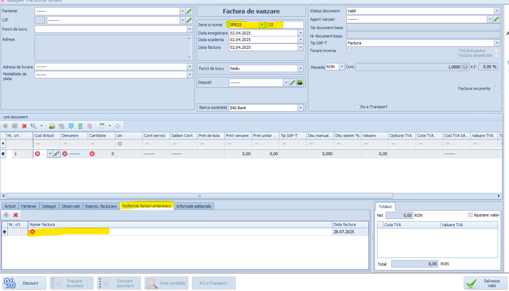 Eroare salvare FV - lipsa nr document Eroare salvare FV - lipsa nr document Exista probabilitatea sa fi adaugat info in aceasta sectiune, in partea de jos, trebuie fie completata fie stearsa refetinta ca sa putem salva documentul