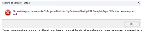 Clik dreapta-propietati-security -edit -> vom alege Users si bifam full control, apply si ok, dupa vom retransmite e-factura.